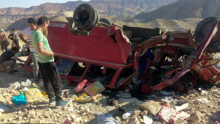 ۱۹ کشته و زخمی درپی سقوط وحشتناک مینی بوس کارگران به دره در جاده دشتستان / فیلم