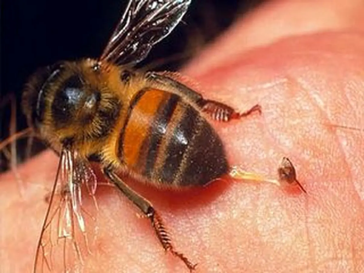 مردی با نگه داشتن ملکه زنبورها در مشت خود کل کلنی زنبور عسل را روی بازوی خود حمل می کند.