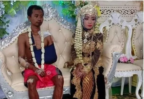 اما شاید شنیدن خبر اینکه یک داماد با زیرشلواری در مراسم جشن عروسی خود شرکت کرده کمی برایتان عجیب و خندهدار باشد. اما واقعا چنین اتفاقی در یک مراسم عروسی در اندونزی رخ داده است. تصاویر منتشر شده عروس را در حالی که یک لباس سنتی بسیار زیبا بر تن دارد در کنار داماد که با زیرشلواری در مراسم شرکت کرده نشان میدهد. در این تصاویر داماد در حالی که شانه و دستش و همچنین زانوهای او باندپیچی شده دیده میشود.