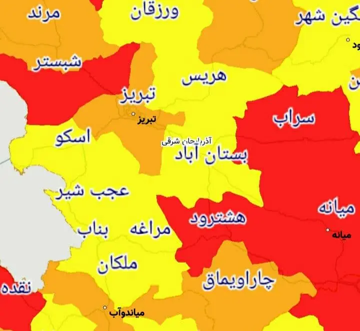 رنگ بندی کرونایی استان آذربایجان شرقی از 16 فروردین 1400