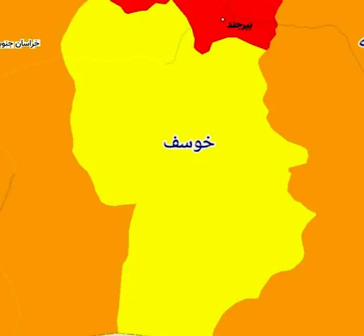 به گزارش منیبان؛ خوسف تنها شهرستان زرد کرونایی در استان خراسان جنوبی است و بقیه شهرها و شهرستانهای استان تماما قرمز یا نارنجی کرونایی هستند.