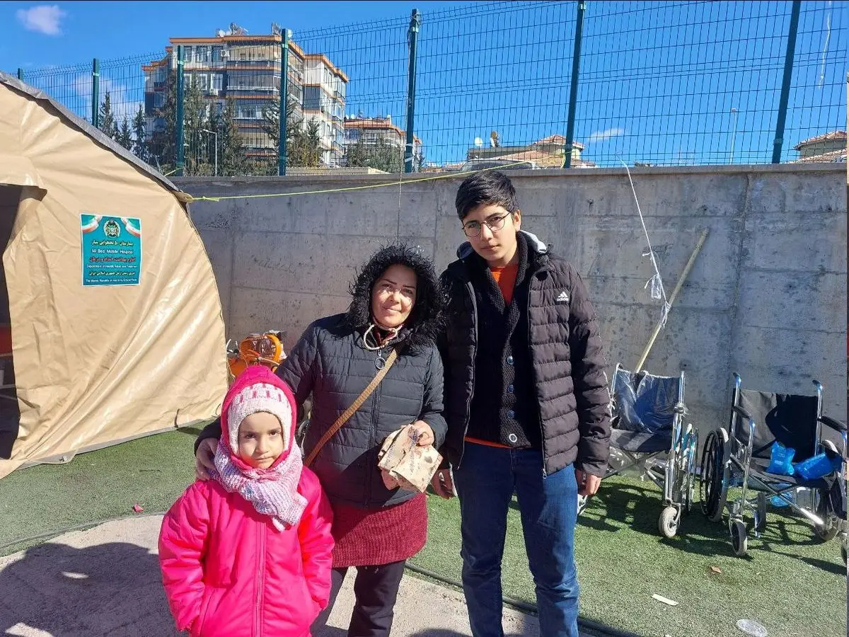 ازترس زلزله،۸ روز در یک تالار عروسی پناه گرفتیم/امیدوارم زودتر روند در شهر به حالت عادی برگردد معصومه و دو فرزندش که ساکن شهر آدیامان ترکیه هستند