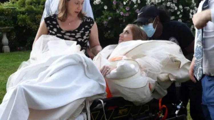 یک عروس آمریکایی که به شدت از برگزاری مراسم عروسی خود خوشحال بود، در حین میدانداری جشن با داماد دچار سانحه شد و کارش به بیمارستان کشید.