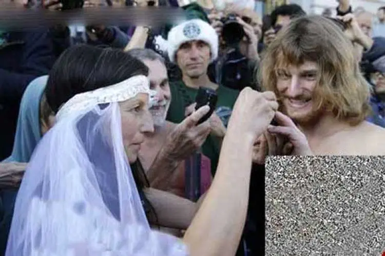 به گزارش منیبان؛ این عروس و داماد عجیب در اعتراض به قانون ممنوعیت برهنگی در خیابان ها و مکان های عمومی در شهر سانفرانسیسکو بعد از مراسم ازدواجشان به صورت کاملا برهنه در حالیکه عروس تنها تور عروسی روی سر داشت وارد خیابان شده و به جشن و پایکوپی پرداختند.عروس 44 ساله این مراسم یک فعال سیاسی ضد حکومت است که بارها توسط پلیس بازداشت شده است و داماد 20 ساله نیز به پیروی از او در این کار شرکت کرده بود.