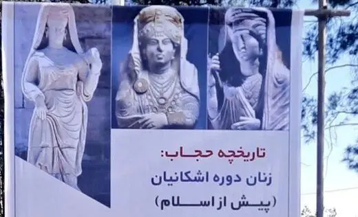 تصویری در شبکههای اجتماعی منتشر شده که با نمایش گذاشتن عکس زنان دوره اشکانیان ظاهرا از شهروندان خواسته شده حجاب خود را رعایت کنند.