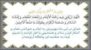 «خدایا در این ماه، مهرورزی به ایتام، و خوراندن طعام، و آشکار کردن سلام، و همنشینی با اهل کرامت را نصیبم فرما، به عطایت ای پناهگاه آرزومندان.»
