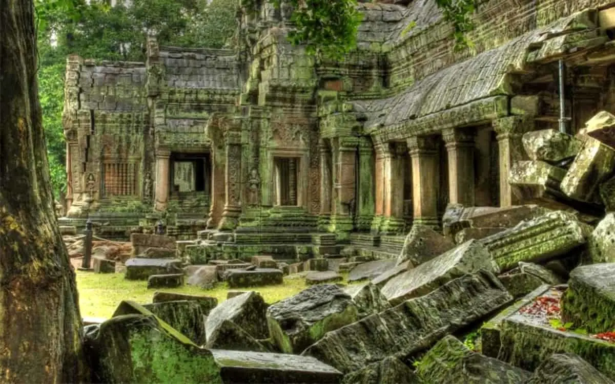 در سال ۱۴۳۱ میلادی سربازان تایلندی به شهر انگکور هجوم آوردند و آن را ویران کردند. ویرانه شهر به حال خود رها شد. به تدریج گیاهان و درختان در اطراف شهر روییدند و آن را در خود پنهان ساختند.