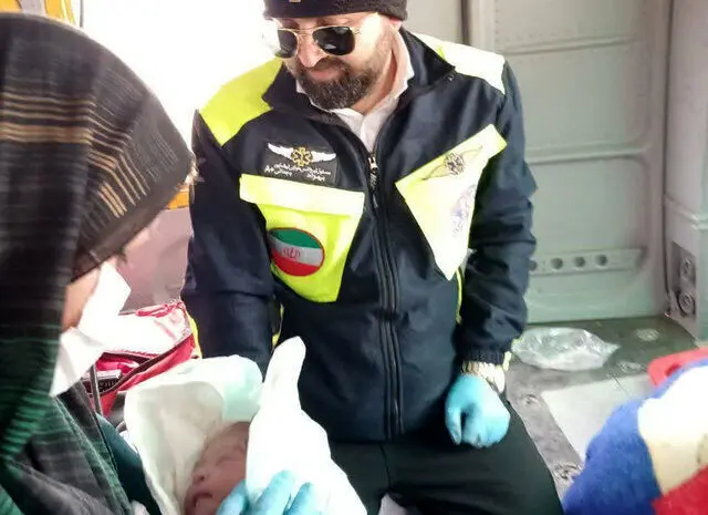 تولد نوزاد پسر در آسمان نیشابور + عکس نوزاد