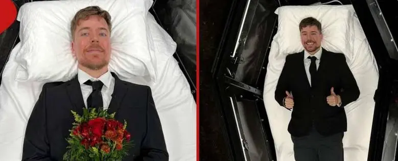 مستر بیست (MrBeast) در آخرین چالش صفحه یوتوب خود که به مدت هفت روز زنده در تابوتی دفن شده بود.