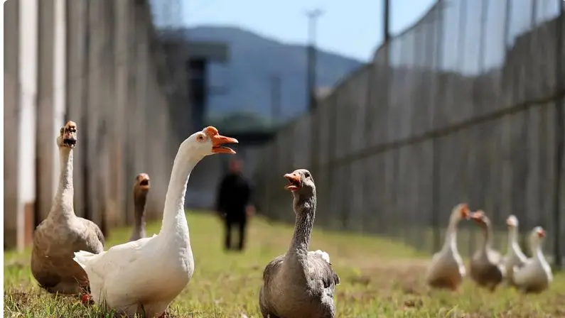 مقامات این زندان‌ها، چند دسته غاز را به جای سگ‌ها در زندان مستقر کرده‌ و گفته‌اند شک ندارند که این نگهبانان جدید، امنیت زندان را تامین خواهند کرد.