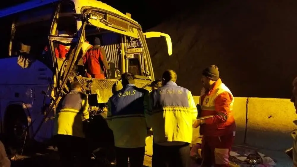 اتوبوس زائران عراقی که از مشهد در حال بازگشت بودند با یک دستگاه کامیون برخورد کرد.