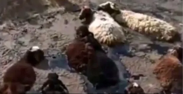 قیر داغ گله گوسفندان به طرز دردناکی بلعید