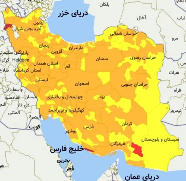 اسامی 3 شهر قرمز کرونایی کشور از 25 اردیبهشت 1400
