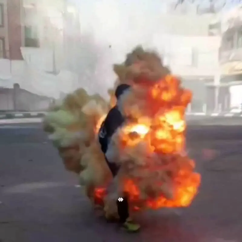 لحظه ترکیدن نارنجک دست‌ساز در دست یک جوان را مشاهده می کنید.
