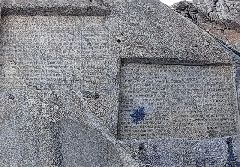 اثر نارنجک بر چهره کتیبه خشایار شاه هخامنشی در همدان + عکس