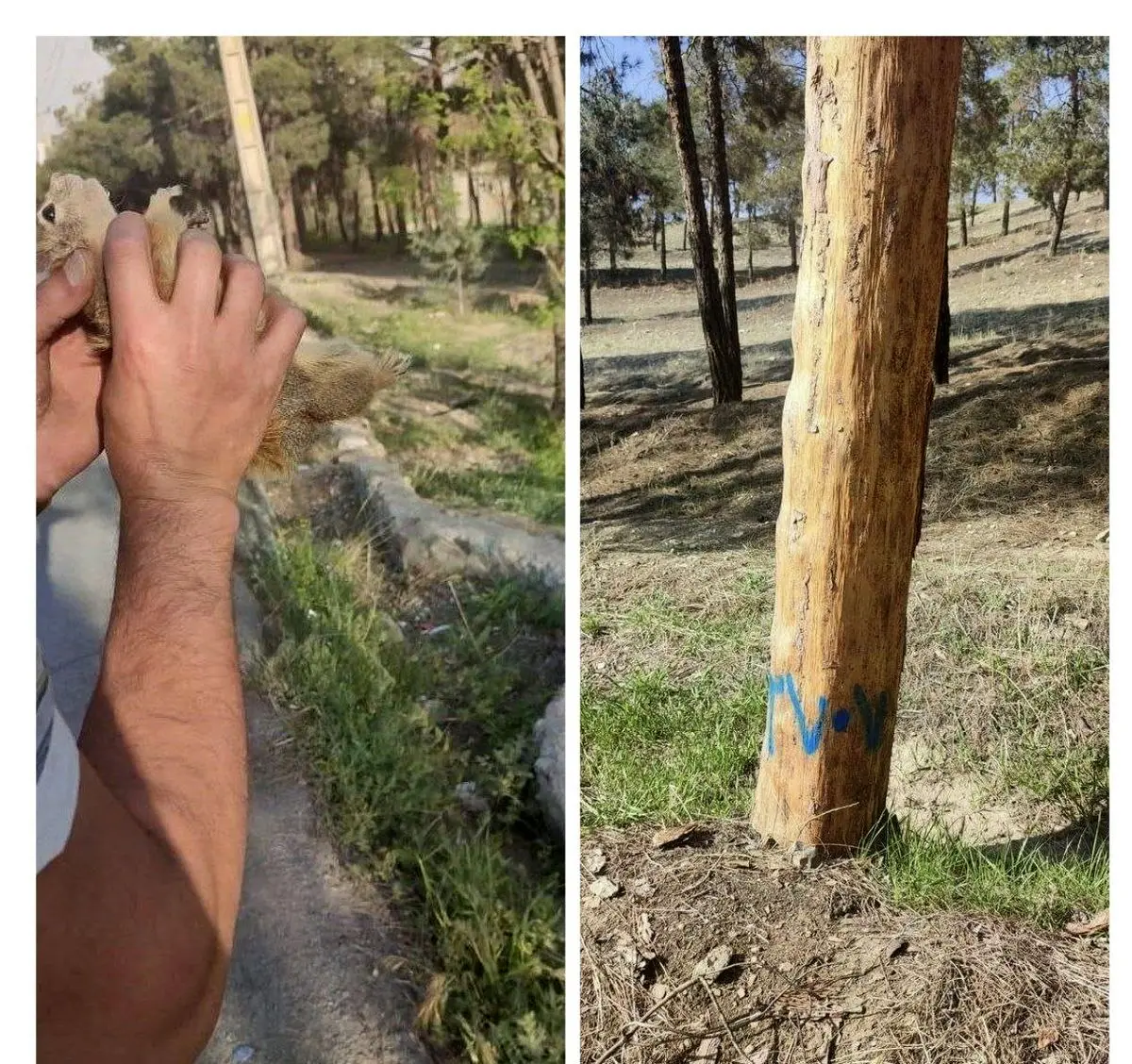 عدهای با تفنگ بادی مشغول شکار سنجاب در پارکجنگلی هستند.