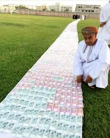 به گزارش منیبان؛ عروس جوان از کار داماد شگفت زده شد ! این داماد با انداختن فرشی از پول زیر قدمهای عروسش سوژه رسانه ها شد . دامادی که مسیری از پول برای همسرش ساخته بود, سوژه رسانه های مجازی شده است.داماد عمانی در یک اقدامی عجیب مسیری از پول ساخت تا همسرش برروی آنها حرکت کند! این داماد عمانی دو میلیون دلار پهن کرد تا عروسش روی آن قدم بزند.