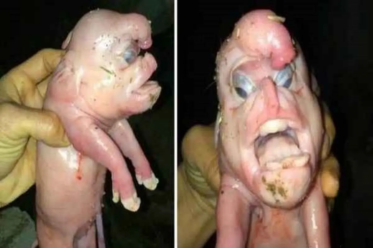 موجود عجیب الخلقه ای از یک خوک در چین متولد شده که بسیارر به موجودات فضایی شباهت دارد.