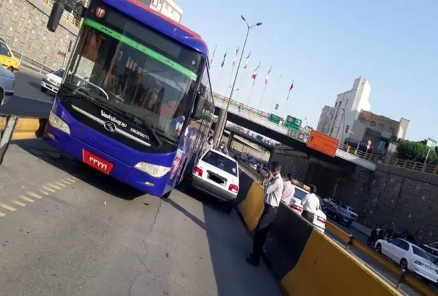 تصادف عجیب اتوبوس بی آرتی با پراید در بزرگراه امام علی (ع)