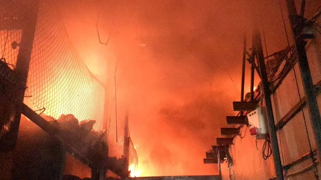 ملکی ادامه داد:دود بسیار غلیظ حاصل از این آتش سوزی به آسمان متساعد می شد که آتش نشانان پس از رسیدن به محل مشاهده می کنند در یک انباری مسقف داری سقف شیروانی قدیمی به وسعت 500،600 متر که مملو از اجناس مختلف اعم از پارچه، ظروف پلاستیکی،فرش و کالاهای این چنینی در حجم زیاد نگه داری می شد کاملا شعله ور شده بود.