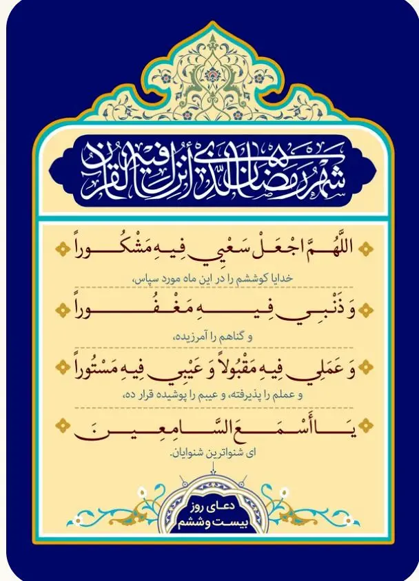 اذان صبح و اوقات شرعی به افق تهران پنجشنبه7 فروردین 1404/دعای روز بیستم و ششم ماه رمضان