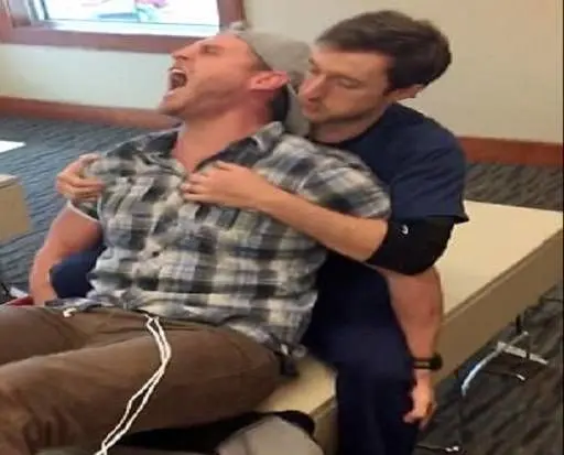 چند ثانیه بعد پسرجوان فریاد کشید، فریادهایی مداوم که التماس می کرد تا دستگاه را خاموش کنند.