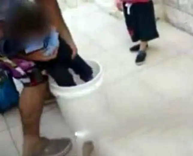 این فرد بازداشت شده برای تنبیه دختر کم سن و سال خود وی را در داخل یک سطل گذاشته و در برابر مخالفت های این دختر کوچک در سطل را نیز می بندد و سپس می گوید که وی را به نزد قصاب خواهد برد.