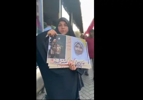 معلمی که شب گذشته دانش آموزاش شهید شدند، امروز (۲۴ خرداد ۱۴۰۴) در راهپیمایی کیلومتری، عکس دانشآموزای شهیدش را در دستش گرفته بود.