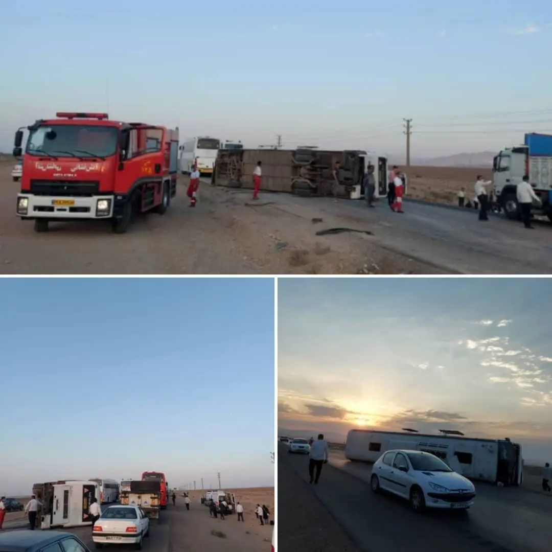 مصدومیت ۱۵ نفر در حادثه واژگونی اتوبوس مسافربری