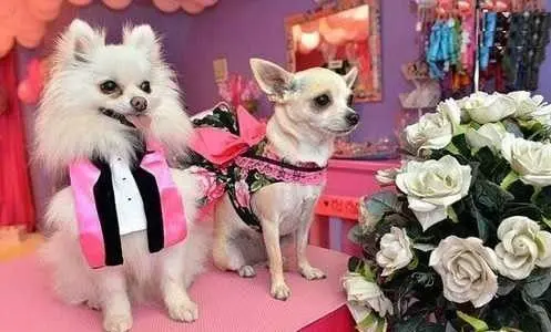 هاروی (سگ داماد) و چی چی (سگ عروس) بعد از حضور در آرایشگاه سگ ها در لندن که 500 دلار برای صاحب اونها خرج برداشت، خود رو برای جشن و پارتی قبل از عروسی که قرارست چند ماه دیگه برگزار بشه و 10 هزار دلار آب میخوره، آماده کرده اند.