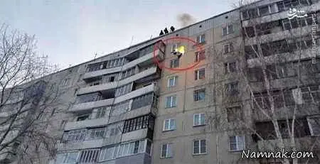 سقوط پسری که خودسوزی کرده بود از طبقه نهم! عکس