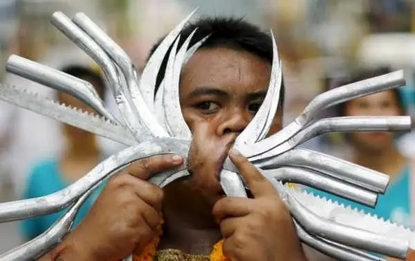 این یکی از جشنواره های بومی و مذهبی Chinese Taoism محسوب می شود که شرکت کنندگان بدن های خود را در ازای طولانی شدن عمر خدایان به این صورت زخمی می کنند.