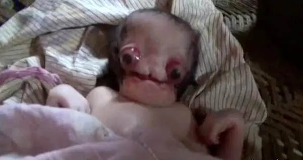 مادری که بعد از زایمان در انتظار دیدن پسرش بود نوزاد ترسناک و عجیب الخلقه ای را دید که چهره ی او شبیه موجودات فضایی است ، نوزادی که گوش ندارد و دهانش تا کناره های صورتش کشیده شده است.