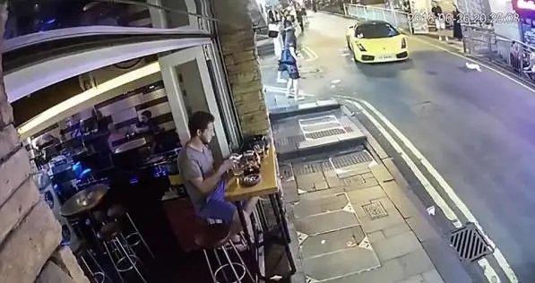 پس از منحرف شدن ماشین در خیابان پر تردد، توسط جدول کوتاهی که در مقابل کافه قرار داشت،متوقف می شود و خوشبختانه هیچ اتفاقی برای اتومبیل 150 هزار دلاری نمی افتد.