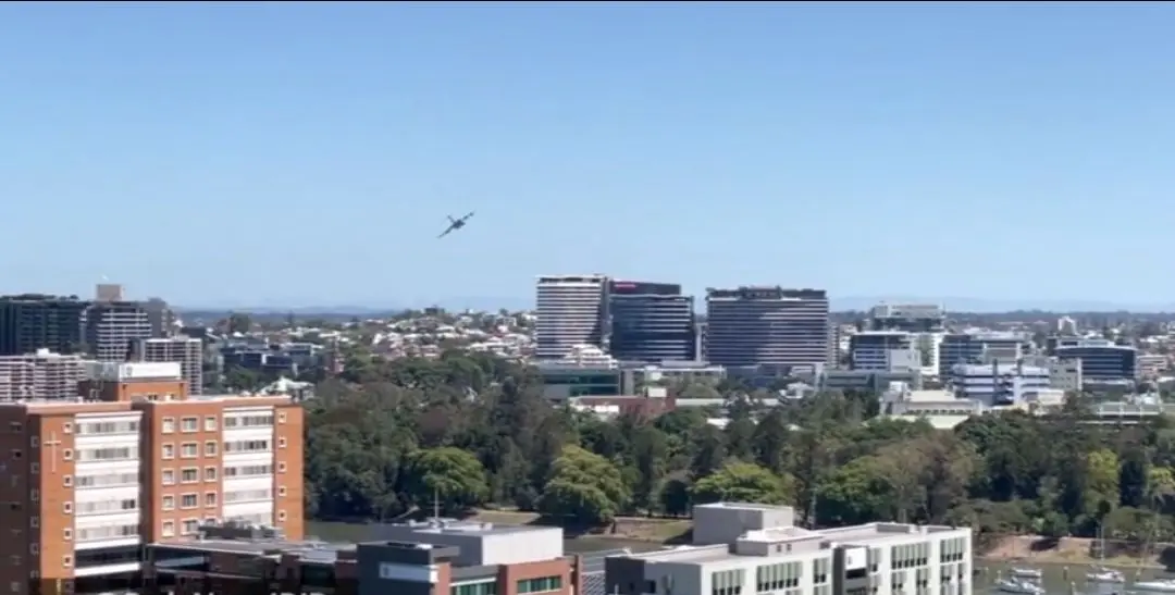 پرواز یک هواپیمای نظامی بین برجهای مسکونی در شهر بریزبِن استرالیا، برای اهالی این شهر یادآور حملات یازدهم سپتامبر سال ۲۰۰۱ در نیویورک بود و باعث وحشت اهالی شهر شد.