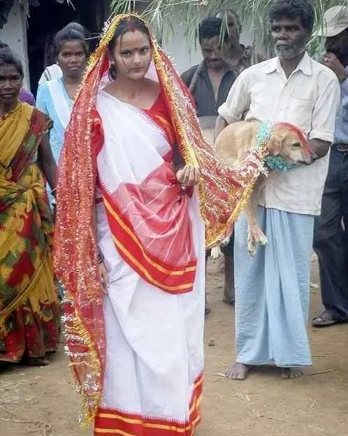این نوع مراسم عروسی مانند بقیه جشن های عروسی برگزار می گردد. داماد در کنار عروس خانم دراز کشیده تا بدشانسی را از وی دور کرده و طالع خوب را برایش رقم زند. مانگلی موندا می گوید من باور دارم روزی مردی پیدا خواهد شد و از من خواستگاری خواهد نمود. همه دختران ارزو دارند روزی با یک شاهزاده ازدواج نمایند.او از ازدواج با این سگ اصلا راضی نیست اما تسلیم باورهای غلط قبیله خود شده است.