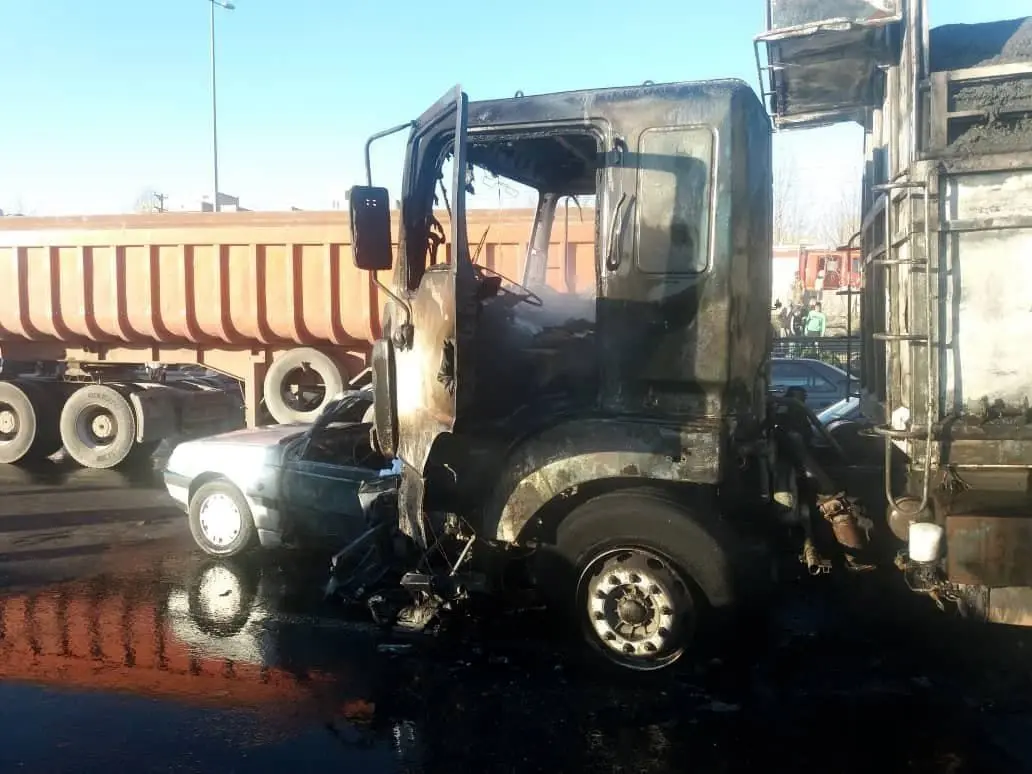 مرگ فجیع سه نفر در تصادف و آتش سوزی مهیب اتوبان آزادگان+ عکس