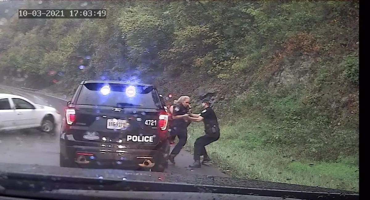 دو پلیس آمریکایی در کنار جاده در حال صحبت با یکدیگر بودند که ناگهان ماشینی به سمت آنها منحرف شد و با شدت به ماشین پلیس برخورد کرد.یکی از پلیسها با کنار کشیدن همکارش او را از مرگ حتمی نجات داد.