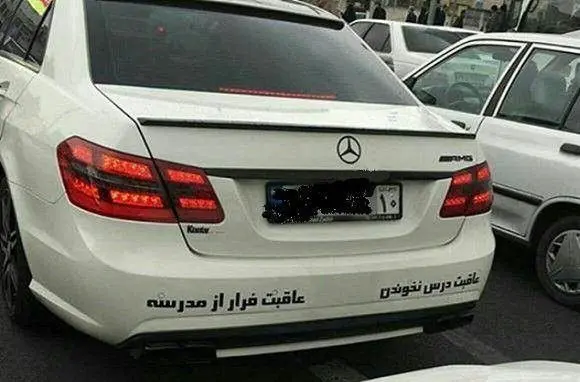 نوشته عجیب بچه پولدار تهرانی پشت خودرویش سوژه این روزهای شبکه های اجتماعی شده است نوشته ای که بسیار عجیب و تاسف بار است.