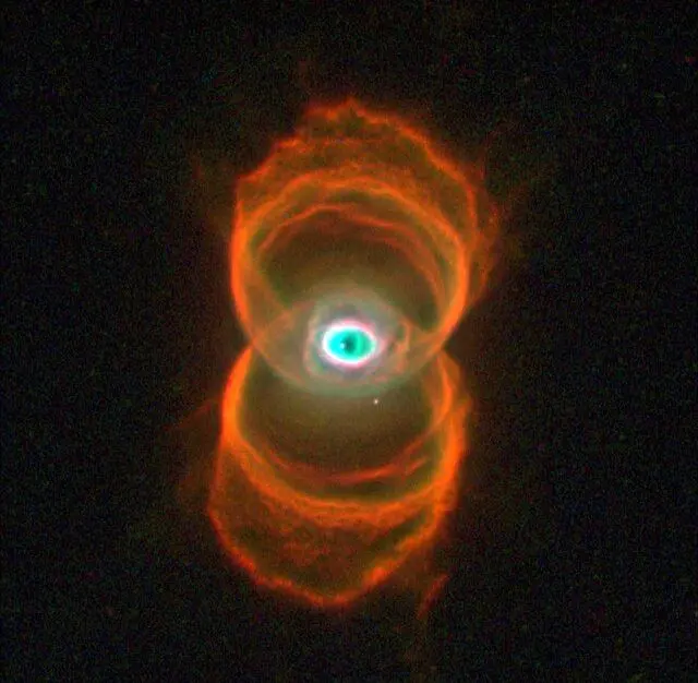 چشمی که در تصویر مشاهده میکنید تصویری از یک سحابی سیاره نما جوان موسوم به "MyCn ۱۸" است که ستارهای در حال مرگ را احاطه کرده است. این سحابی در فاصله هشت هزار سال نوری از ما قرار دارد و این تصویر نیز توسط تلسکوپ فضایی هابل ناسا ثبت شده است. یک سحابی سیارهنما نوعی سحابی گسیلشی است که از گاز و پلاسما تشکیل شده است. سحابی ساعتشنی یا MyCn ۱۸ سحابی سیارهنمایی است که در صورت فلکی مگس جنوبی قرار دارد. ساختار ساعتشنی آن به دلیل انبساط بادهای ستارهای بسیار پرسرعت درون ابری با سرعت گسترش کمتر ایجاد شده است.