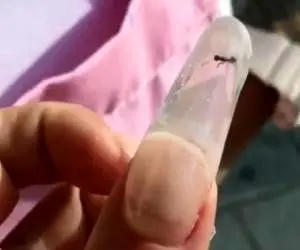 در یک سالن آرایشگاهی برای جذب مشتری ، کاشت ناخن های مصنوعی عجیب و غریبی انجام می دهند و از مورچه های زنده در طراحی ناخن استفاده می کنند.