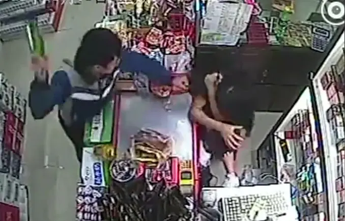 در فیلم که توسط دوربین های مداربسته فروشگاه گرفته شده مهاجم با ضربه ای سنگین به سر فروشنده درحالیکه موهایش را می کشد او را ترسانده و بارها تهدید می کند که پول صندوق را در اخیتارش قرار دهد.