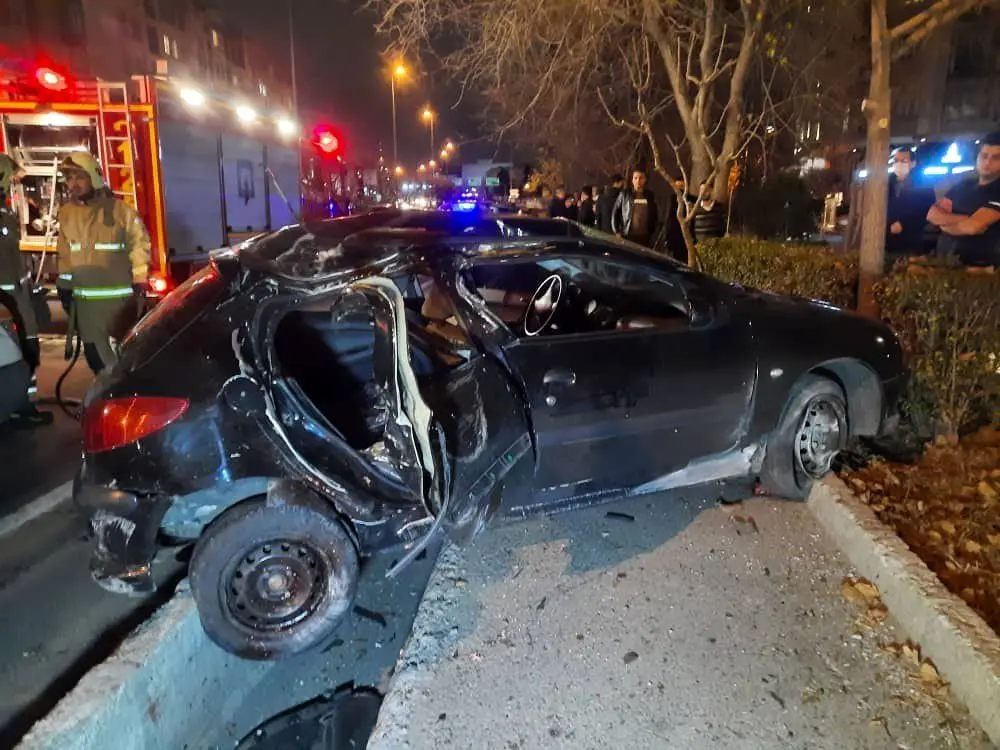 سخنگوی سازمان آتش نشانی اظهار کرد: آتش نشانان پس از حضور در محل مشاهده می‌کنند که یک دستگاه خودروی ۲۰۶ به دلیل نامشخص از مسیر خارج شده و بر اثر برخورد با جدول‌های کنار بزرگراه وارد فضای سبز شده است و با یک درخت برخورد است.