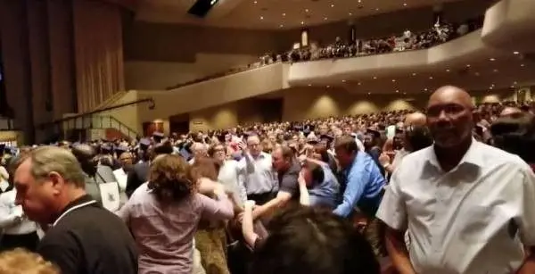 مراسمی که در کلیسای " باپتیست بلوو در ممفیس" برگزار می شد هنگام اهدای جوایز به دانش آموزان برتر کاملا به هم خورد.به گفته ی شاهد و منتشر کننده تصاویر این درگیری زمانی رخ داد که دو خانواده هم زمان ادعا کردند که صندلی ردیفی خاص جای نشستن انهاست.