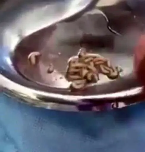یک به یک تعداد زیاد کرم های زنده از گوش بیمار بیرون کشیده می شده و داخل ظرف مخصوص قرار می گرفتند.