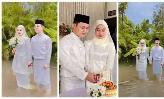 فصل عروسی و فصل بارانهای موسمی واقعاً با هم ترکیب نمیشوند. مخصوصاً زمانی که این بارانها همراه سیل آسا باشد، با این حال یک عروس و داماد اهل مالزی با وجود سیل شدید پس از باران شدید به جشن عروسی خود ادامه دادند.