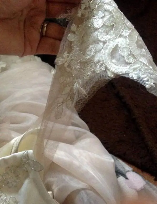 طراح لباس که نامش منتشر نشده است بعد از مدتها تلاش و ملاقات با دختر جوان برای پرو لباس بالاخره 2 روز قبل از مراسم عروسی لباس را با پیک فرستاد ، لباسی که هیچ شباهتی با طرح مورد نظر نداشت و این را در تصاویری که در این بخش مشاهده می کنید به خوبی متوجه خواهید شد.