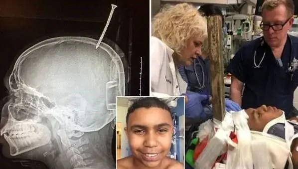 پسر 13 ساله در حال ساخت خانه درختی بود که ناگهان تکه ای چوب میخ و پیچ دار روی سرش سقوط کرد ، پیچ داخل جمجمه او فرو رفت و در مرز حساس گیر کرد.