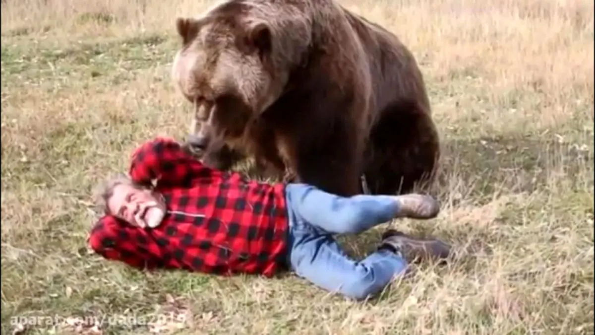 حمله هولناک یک خرس به مردی درخانه‌اش+فیلم