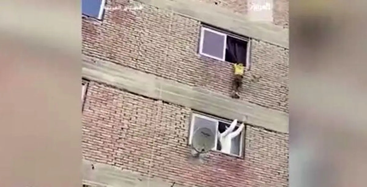 دو جوان مصری موفق شدند یک کودک خردسال را از سقوط از طبقه سوم ساختمانی در محله عین شمس در قاهره نجات دهند.